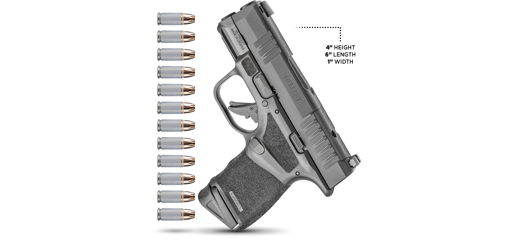 - HEIGHT: 106,5 mm (with 11rd magazine - flat base)