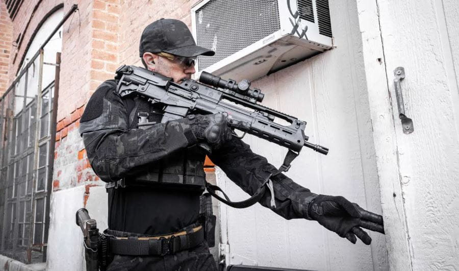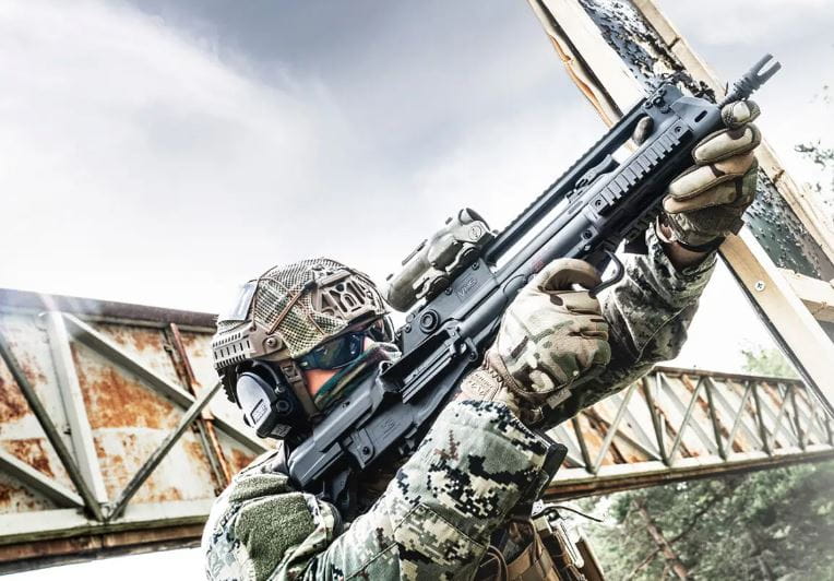 Regulowany system gazowy z ustawieniami "N" (Normal) oraz "S" (Supressed) pozwoli szybko dostosować strzelcowi ilość gazów wracających do systemu w zależności od używanego urządzenia wylotowego. Karabinek posiada zintegrowane z górną szyną Picantinny przyrządy celownicze typu flip-up, rozwiązanie to pozwala zawsze mieć pod ręką alternatywną metodę celowania bez zabierania przestrzeni na szynie. Przednie łoże wyposażone jest w szyny montażowe w systemie M-lok na godzinie 9, 6, 3 dając możliwość montażu szerokiej gamy akcesoriów bez zbędnego zwiększania masy karabinka.