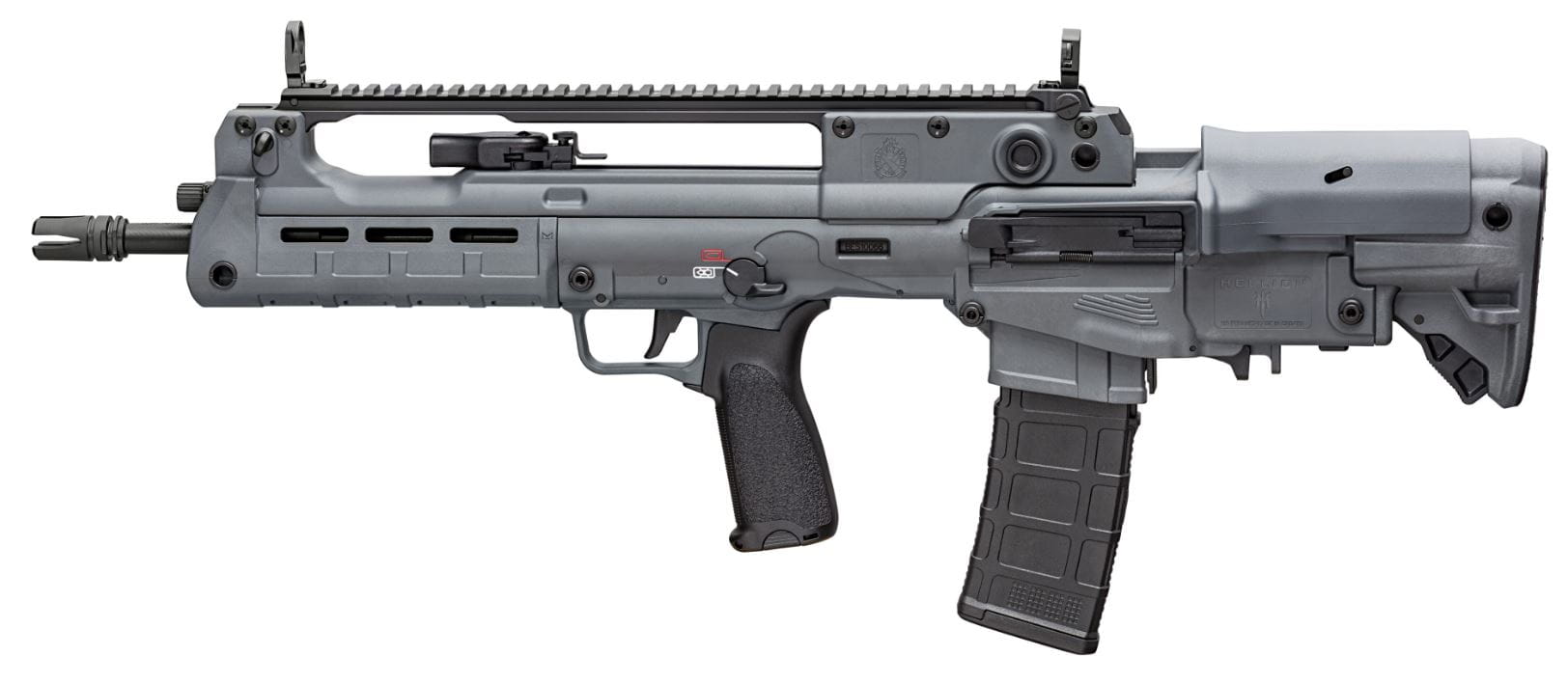 Konstrukcja „bullpup”, w której komora nabojowa znajduje się w kolbie umożliwia zmniejszenie rozmiaru całkowitego karabinka, pozostawiając pełną długość lufy. HS HELLION ma całkowitą długość zaledwie 72 cm, jednocześnie dysponując 16-calową kutą na zimno lufą. Kucie na zimno zmienia strukturę stali, zwiększając jej wytrzymałość i wydłużając żywotność lufy karabinu. Lufa posiada wewnętrzne pokrycie chromem, który zwiększa jej żywotność oraz ułatwia czyszczenie. Zastosowany został gwint 1:7 przeznaczony do amunicji z ciężką kulą, która przy tej długości lufy zapewni optymalne parametry balistyczne oraz stabilizację lotu pocisku. Lufa zakończona jest gwintem 1/2x28” na urządzenie wylotowe, z fabrycznie zamontowanym tłumikiem płomienia.