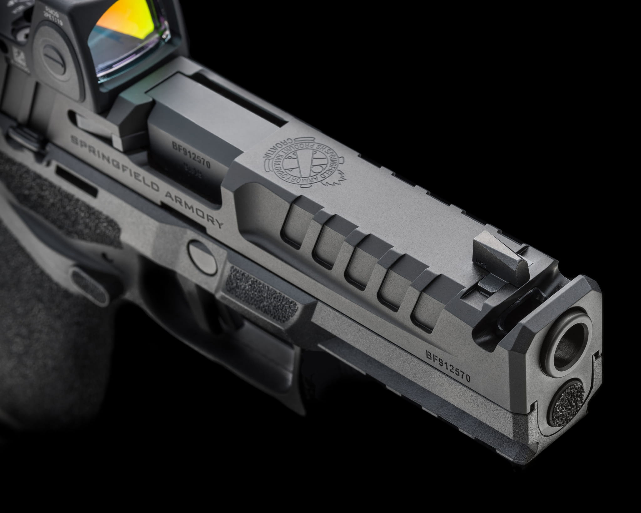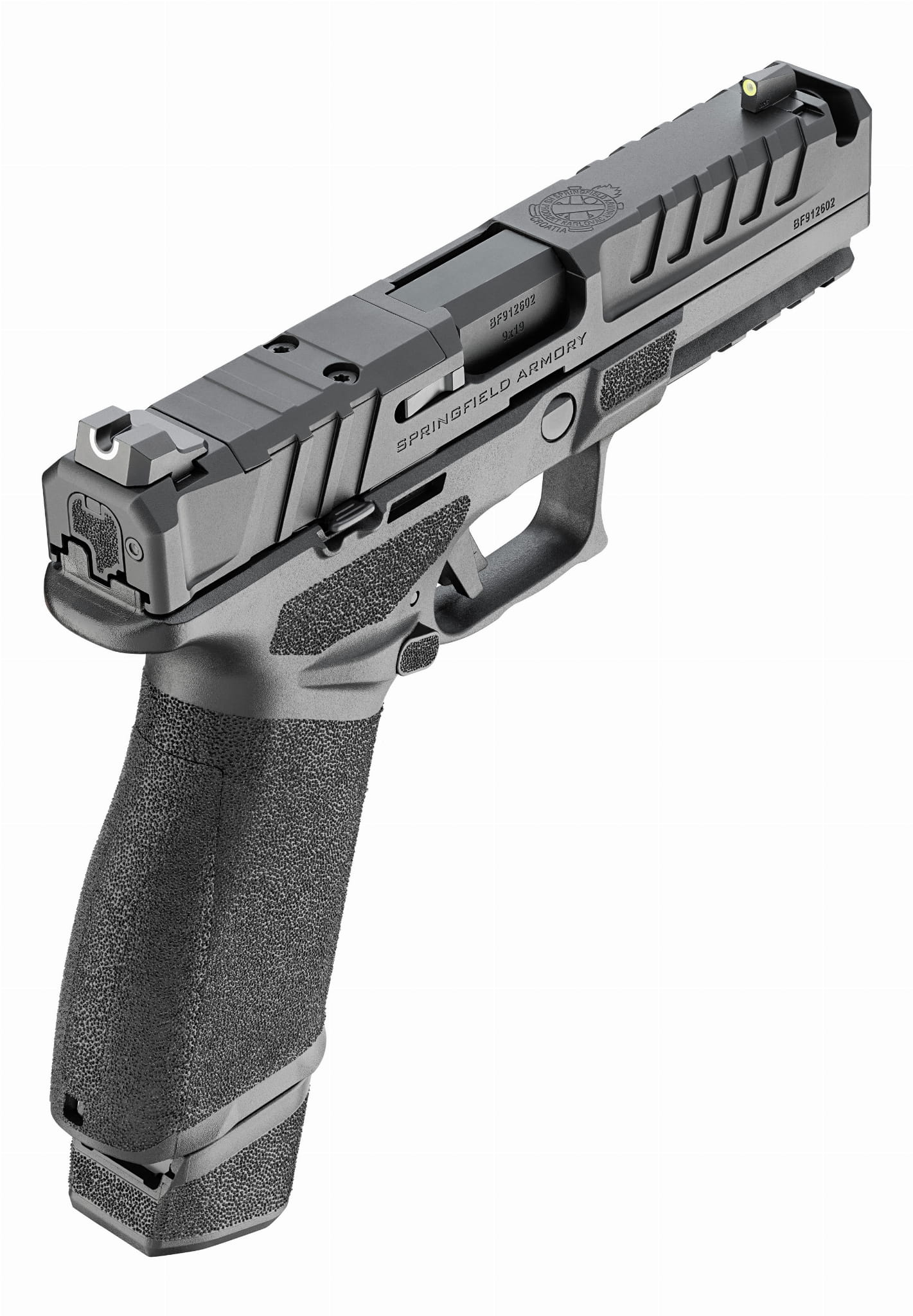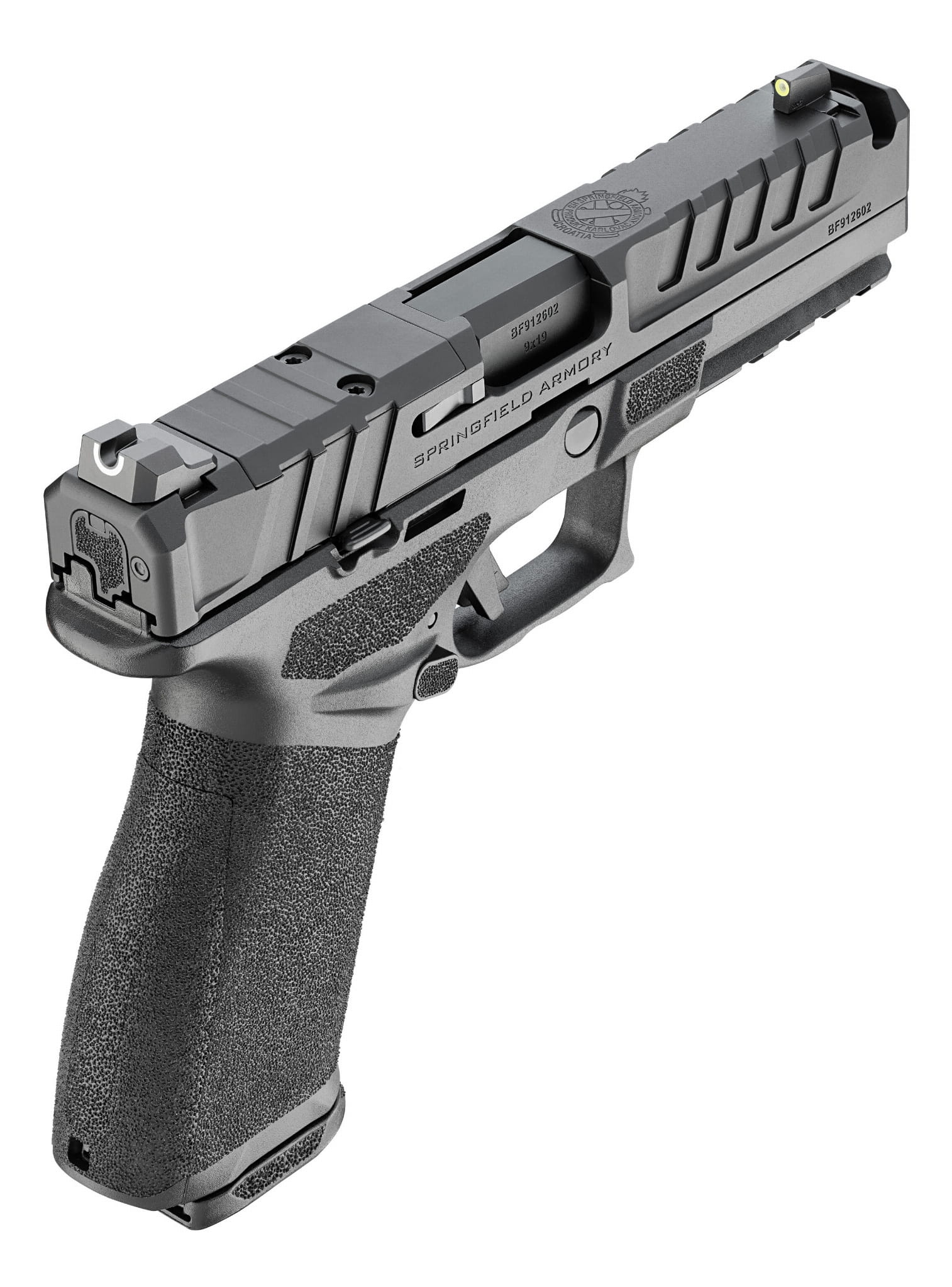 Ergonomiczny chwyt z teksturą Adaptive Grip dostosowuje się do dłoni użytkownika – pozostaje komfortowy przy noszeniu, a jednocześnie zapewnia pewny chwyt podczas strzelania. Obustronne manipulatory oraz przemyślany układ elementów sterujących sprawiają, że pistolet jest wygodny zarówno dla osób prawo-, jak i leworęcznych.