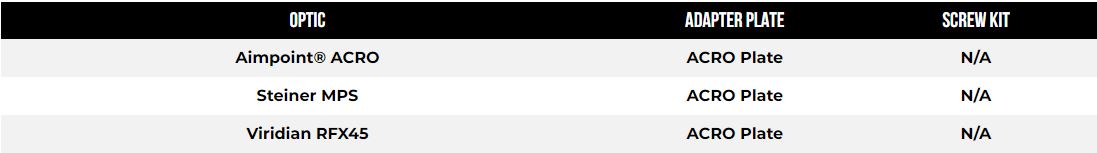 Wykonane ze stali i wykończone odporną na korozję powłoką azotkową, płytki adaptera ACRO umożliwiają użytkownikom zamontowanie dodatkowej optyki Ddo pistoletu Echelon.